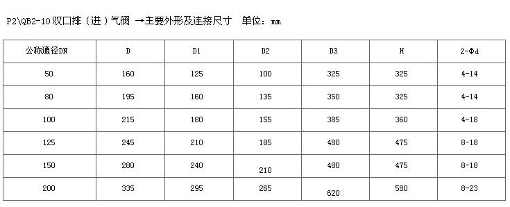 (1)注:D>350mm管道請選單口排氣閥(QB1-10)。