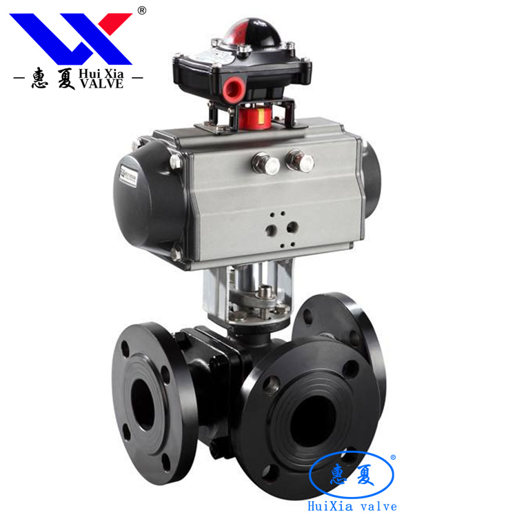 Q644氣動法蘭L型三通球閥用于介質流向的切換,能使相互垂直的兩個通道連通。三通球閥一般采用兩閥座結構,亦可根據用戶要求采用四閥座結構。四閥座密封三通球閥具有造型美觀、結構緊湊合理,它不僅可實現介質流向的切換,也可使三個通道相互連通,同時也可關閉任一通道,使另外兩個通道連通,靈活控制管路中介質的合流或分流。